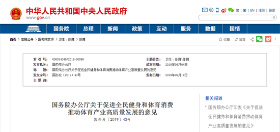 國務院辦公廳關于促進全民健身和體育消費 推動體育產業高質量發展的意見